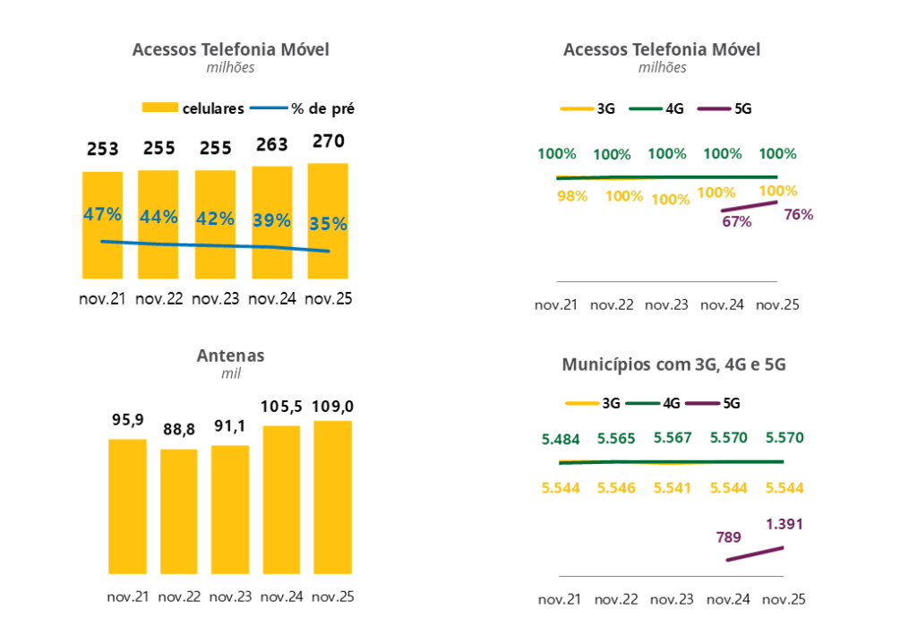 O Desempenho do Setor de Telecomunicações é divulgado trimestralmente com a série histórica dos últimos 20 anos dos principais números de acessos dos serviços de telecomunicações e financeiros do setor.